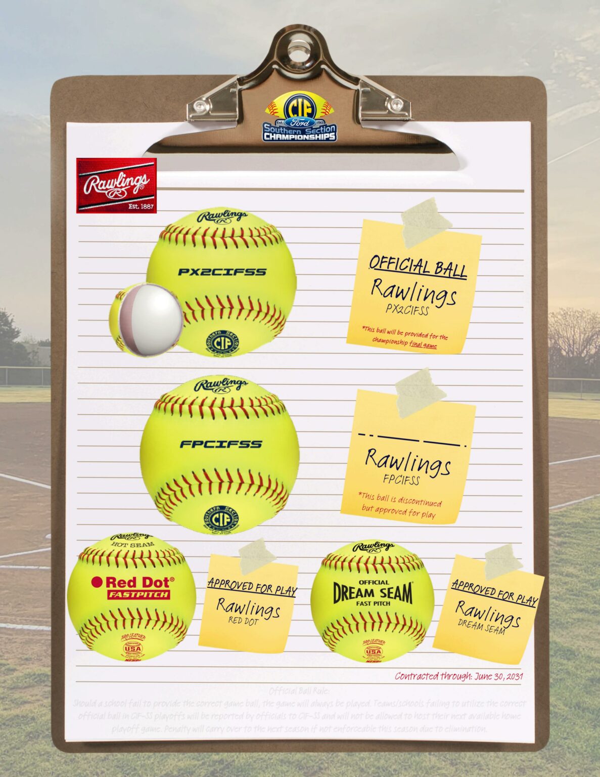 The following are the only approved softballs for use in the 2026 CIF Playoff rounds. If the home team does not have the proper ball, check with the visiting team. If neither team has the proper ball, you still play the game and then fill out the “Playoff Ball Violation” on the CIF website.